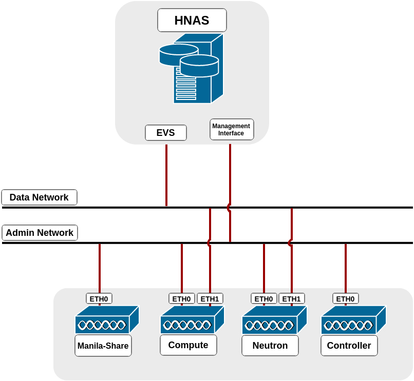 eth1: Data Network, can ping HNAS EVS IP (data interface).